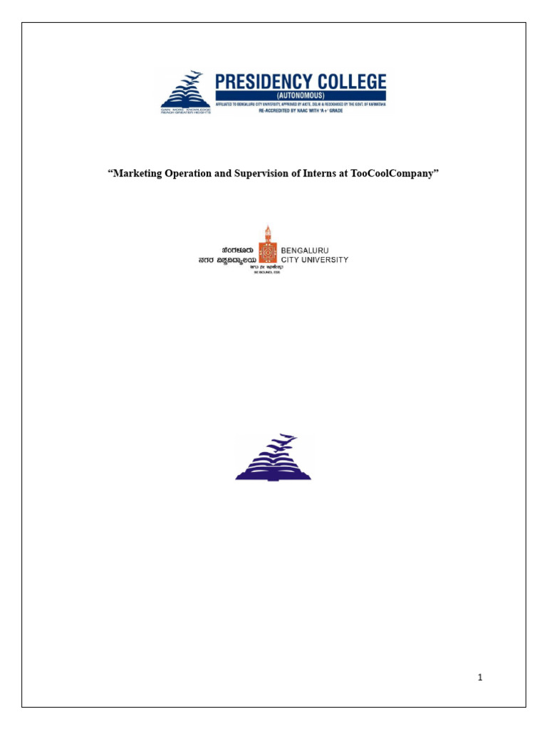 “Marketing Operation and Supervision of Interns at TooCoolCompany”