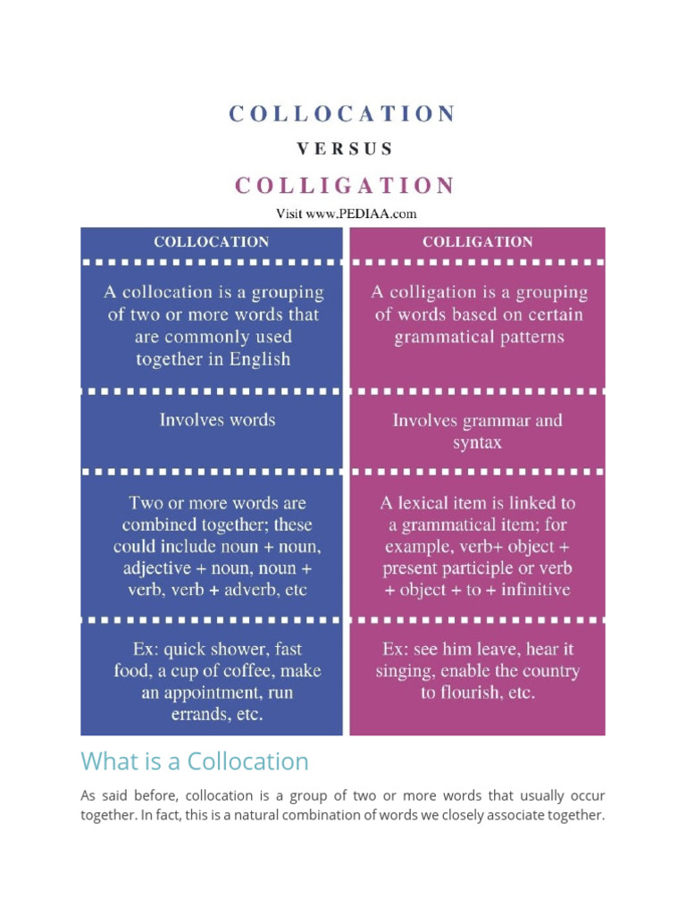 in English, whereas a colligation is a grouping of words based on certain grammatical