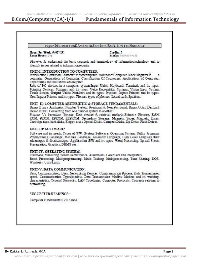 By Kakkerla Ramesh, MCA Page 2B.Com.(Computers/CA)-I/1 Fundamentals of Information Technology