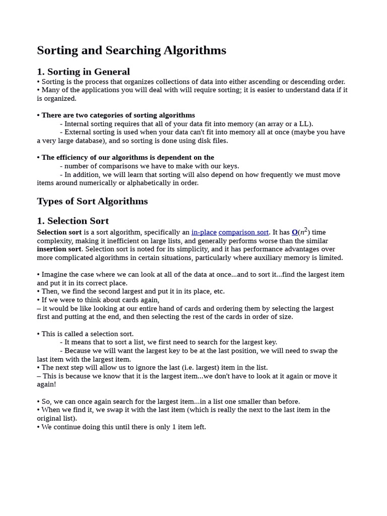 Sorting and Searching Algorithms