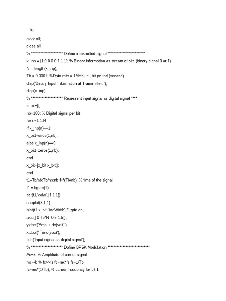 disp('Binary Input Information at Transmitter: ');