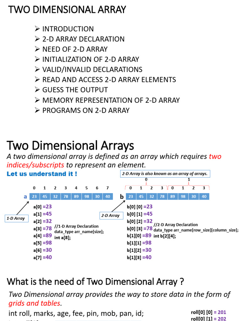 Let us understand it ! 2-D Array is also known as an array of arrays.