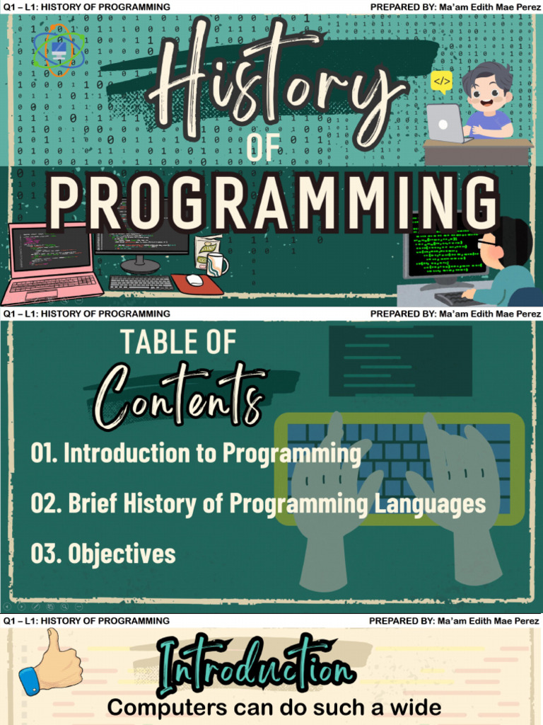 Q1 – L1: HISTORY OF PROGRAMMING PREPARED BY: Ma’am Edith Mae Perez