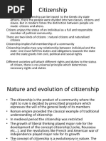Citizenship is a life long relationship which a citizen enters into and only graduates when he or