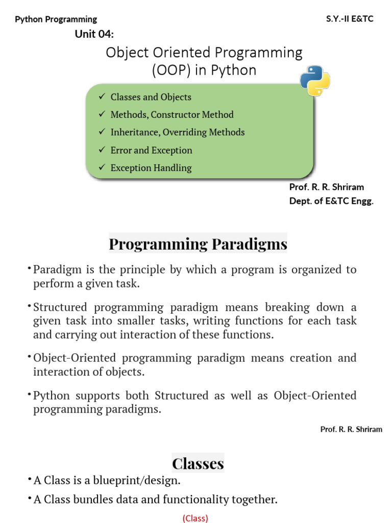 • Note that int, float, str, list, tuple are built-in classes in Python.