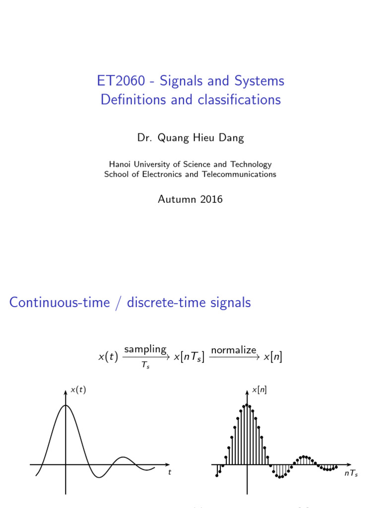 x(t) −−−−−−→ x[nTs ] −−−−−−−→ x[n]
