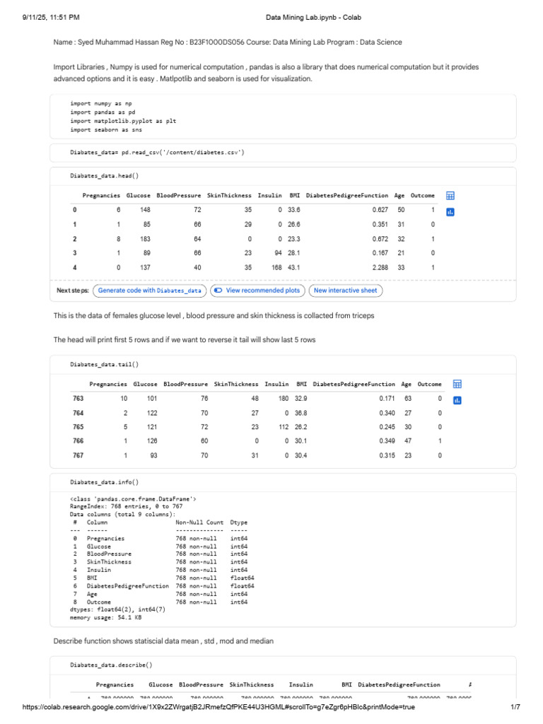 Name : Syed Muhammad Hassan Reg No : B23F1000DS056 Course: Data Mining Lab Program : Data Science