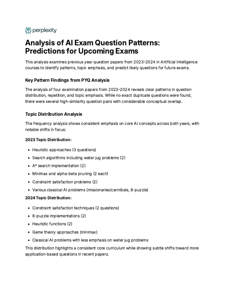 This analysis examines previous year question papers from 2023-2024 in Artificial Intelligence
