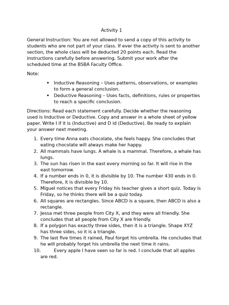 paper. Write I if it is (Inductive) and D id (Deductive). Be ready to explain