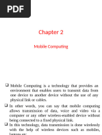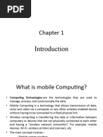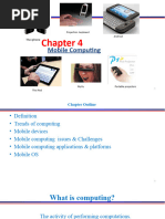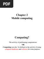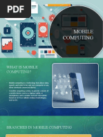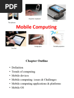 The document outlines the fundamentals of mobile computing, including its definition, components, and various types of mobile devices. It discusses the key characteristics, technologies, and applications of mobile computing, while also addressing challenges such as limited battery life and security concerns. The course titled 'Wireless Communication and Mobile Computing' is part of the Computer Science curriculum, focusing on the dynamic field of mobile technology.