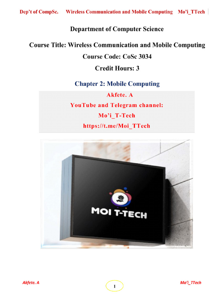 Akfete. A G) Mo’_TTechDep’t of CompSe. Wireless Communication and Mobile Computing Mo’i_TTech