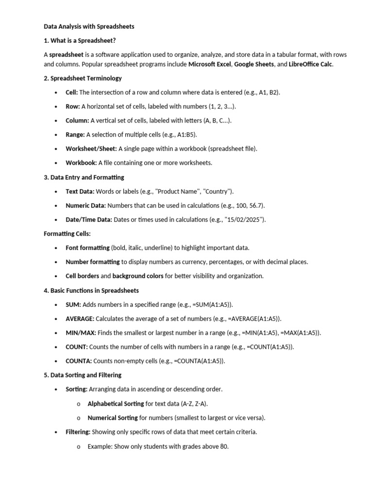 and columns. Popular spreadsheet programs include Microsoft Excel, Google Sheets, and LibreOffice Calc.