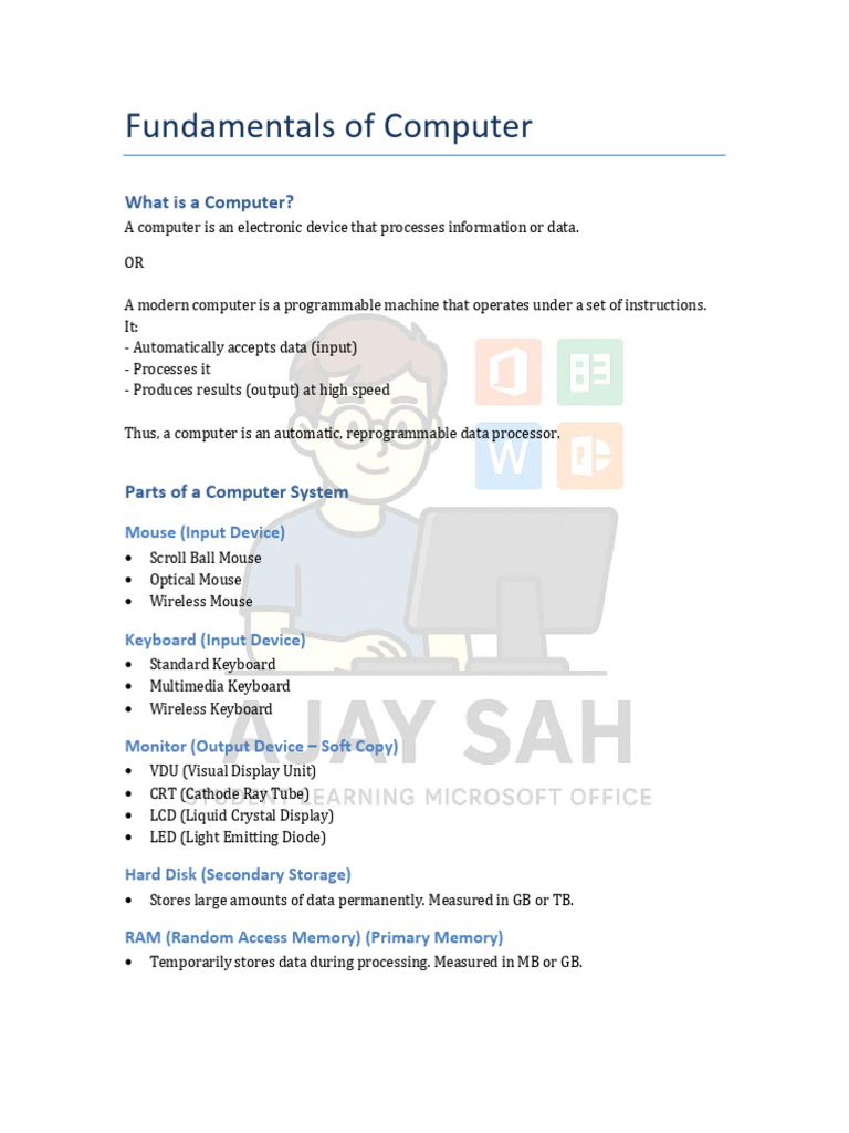 ROM (Read Only Memory) (Primary Memory - Non-Volatile)