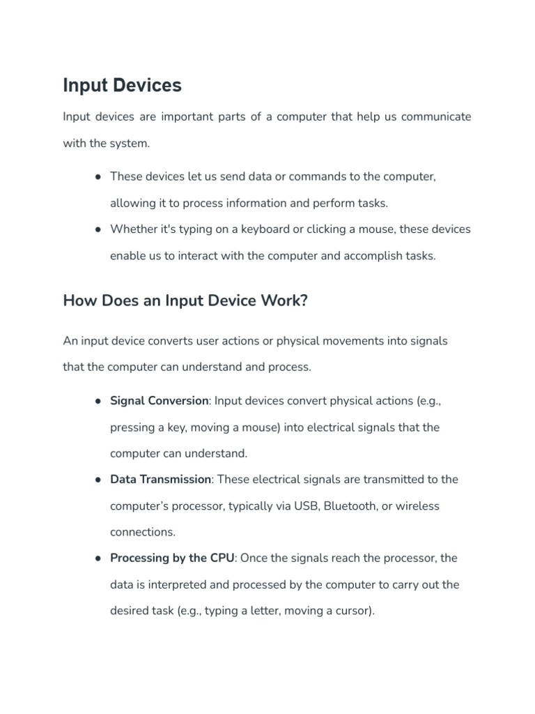 ● Signal Conversion: Input devices convert physical actions (e.g.,