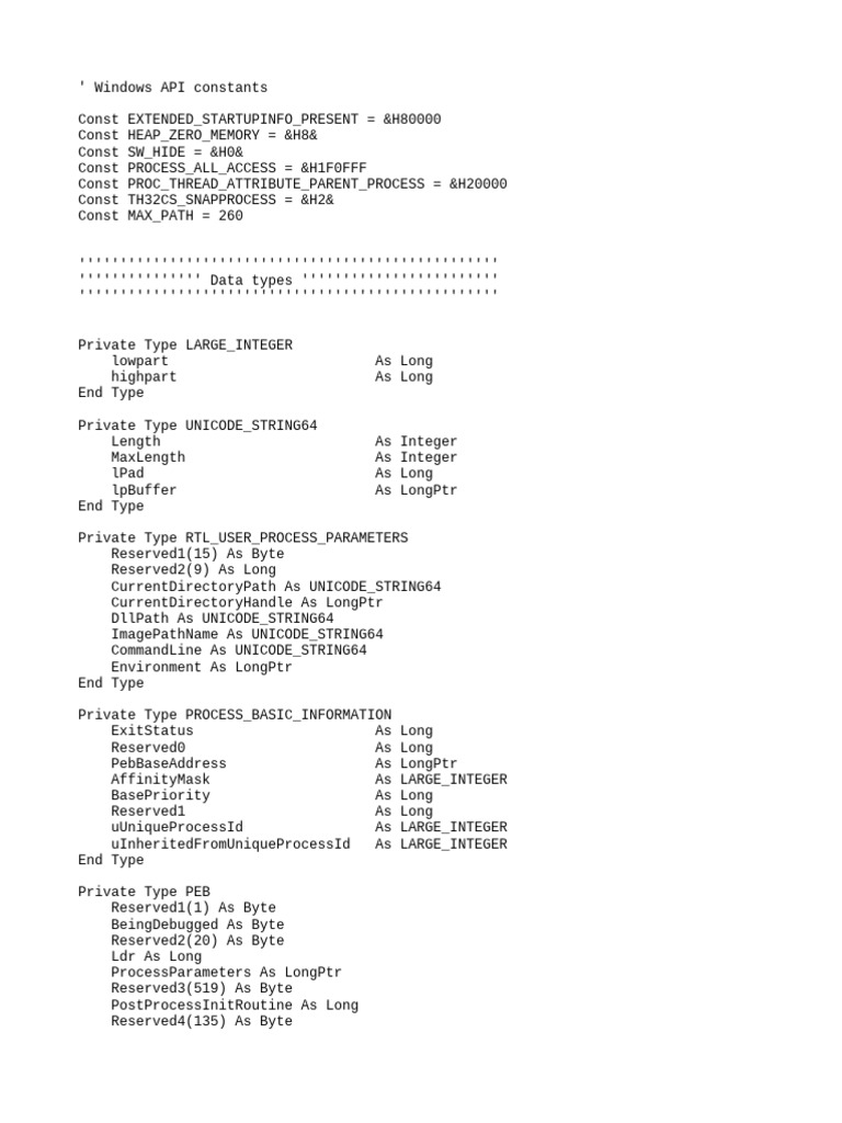 Dim pbi As PROCESS_BASIC_INFORMATION