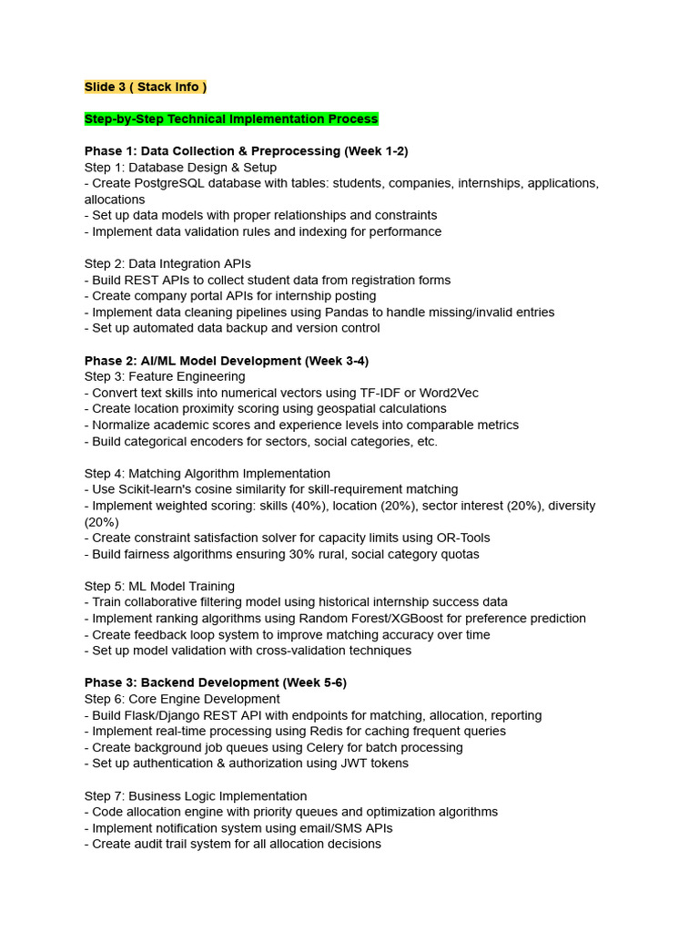 - Build Flask/Django REST API with endpoints for matching, allocation, reporting