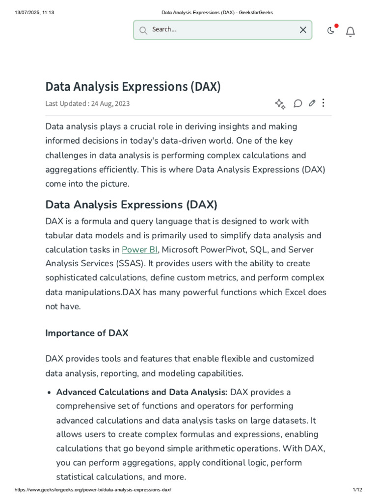 13/07/2025, 11:13 Data Analysis Expressions (DAX) - GeeksforGeeks