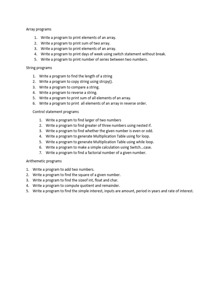 Control statement programs
