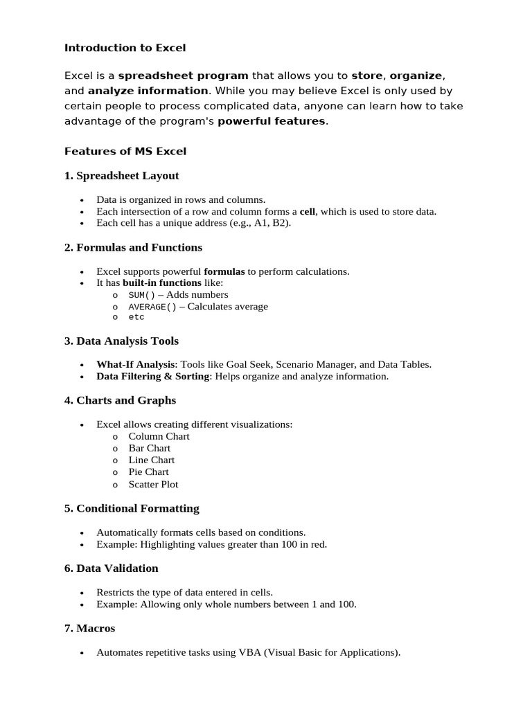 Features of MS Excel