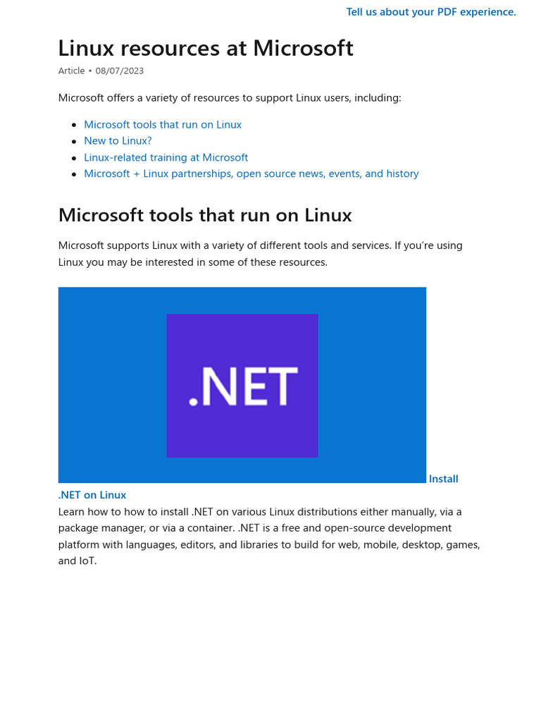 resources at Microsoft, such as training courses, Linux-versions of popular tools,