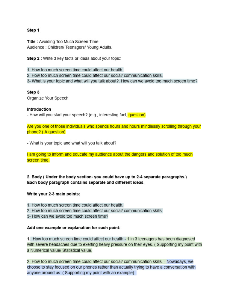 3- What is your topic and what will you talk about?. How can we avoid too much screen time?