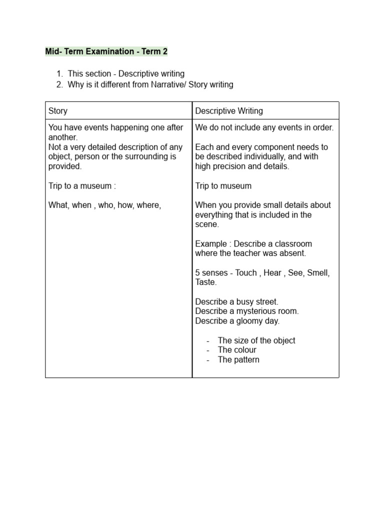 Story Descriptive Writing
