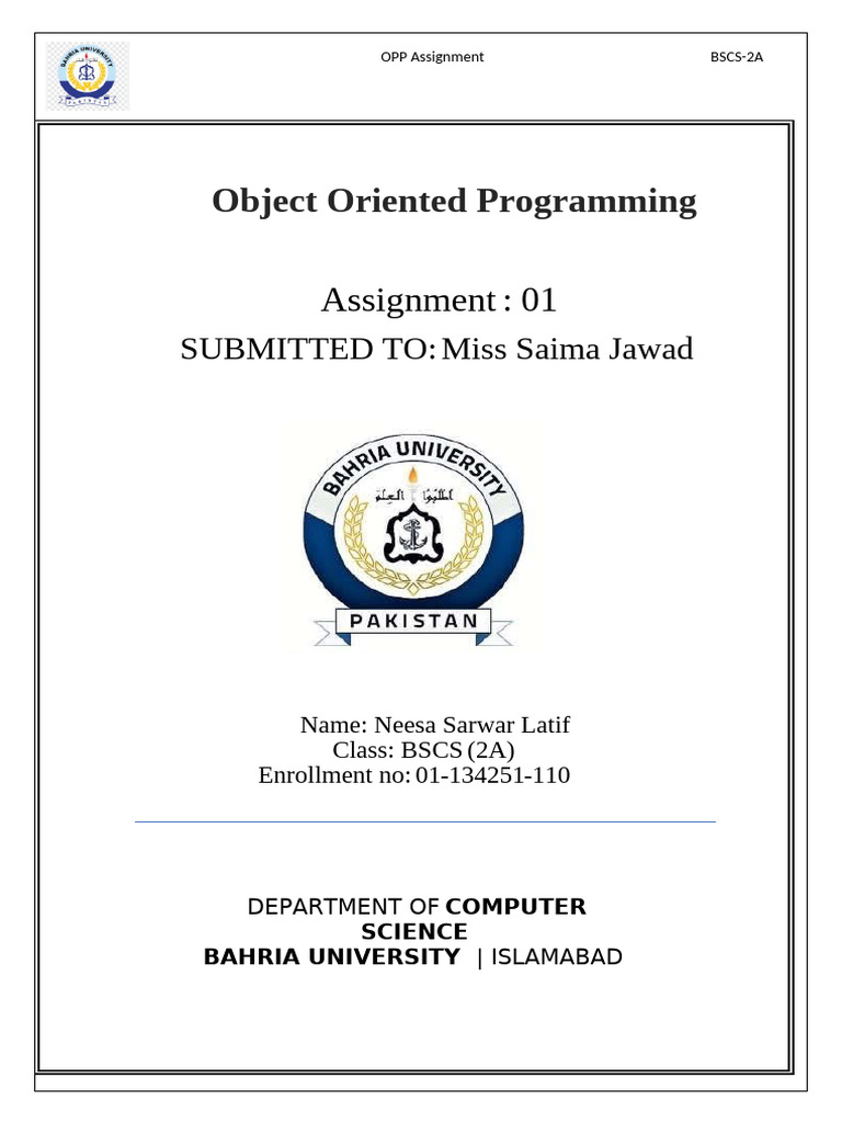 system and apply the basic concepts of object oriented programming to model it. The assignment is