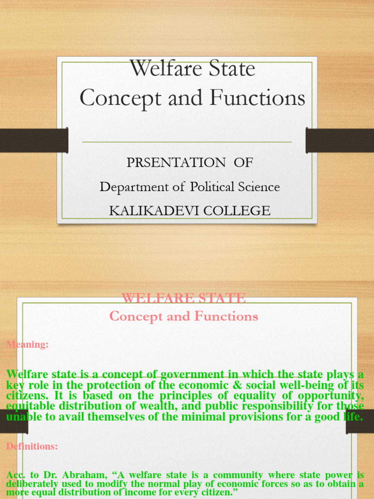 Acc. to Dr. Abraham, “A welfare state is a community where state power is