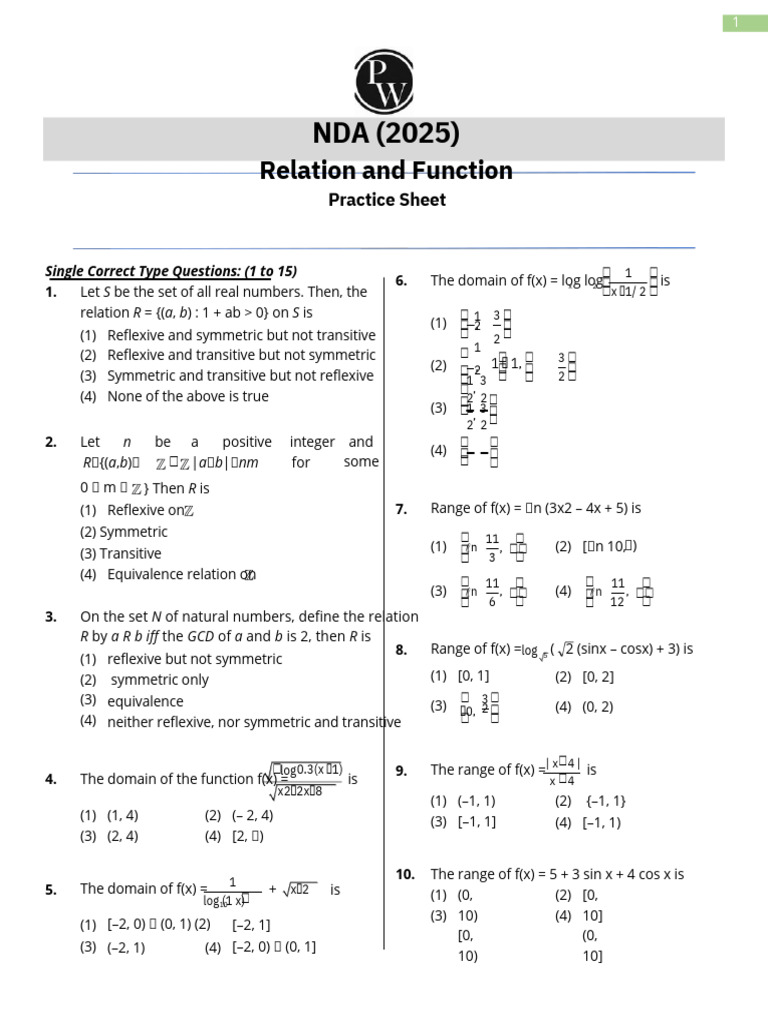 21. Let f : R [–1, 1] is defined by f(x) = sin (2x + 1). Integer Type Questions (23 to 25)