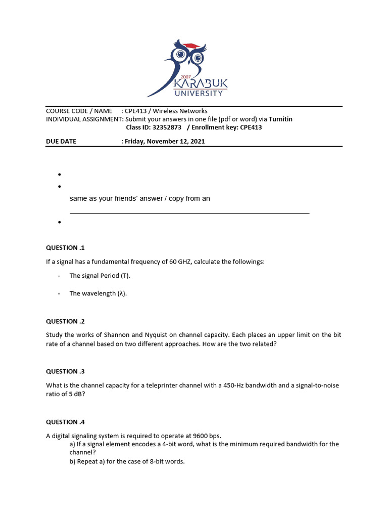 COURSE CODE / NAME : CPE413 / Wireless Networks