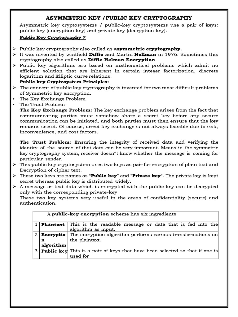 ASYMMETRIC KEY /PUBLIC KEY CRYPTOGRAPHY