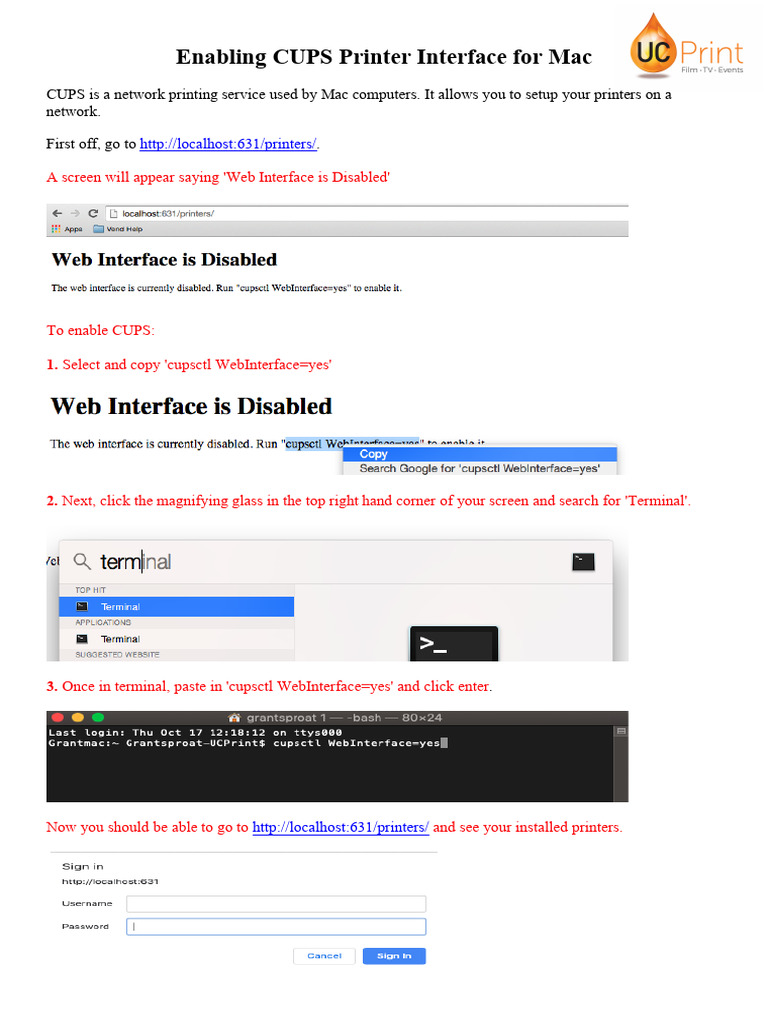 CUPS is a network printing service used by Mac computers. It allows you to setup your printers on a
