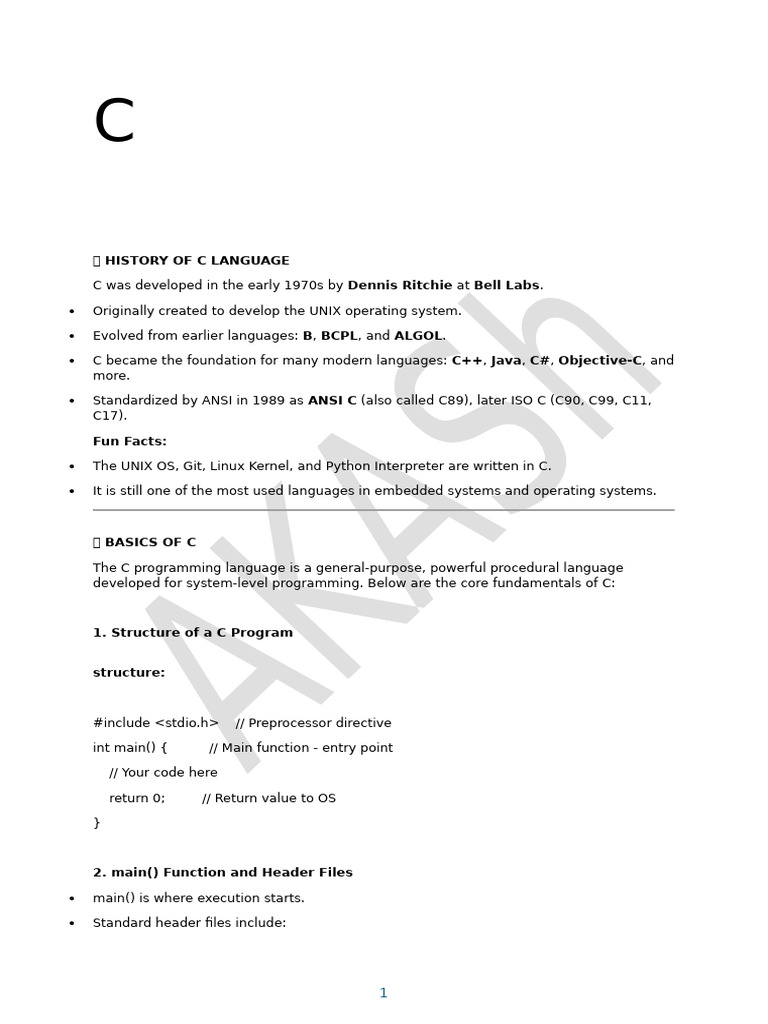 Standardized by ANSI in 1989 as ANSI C (also called C89), later ISO C (C90, C99, C11,