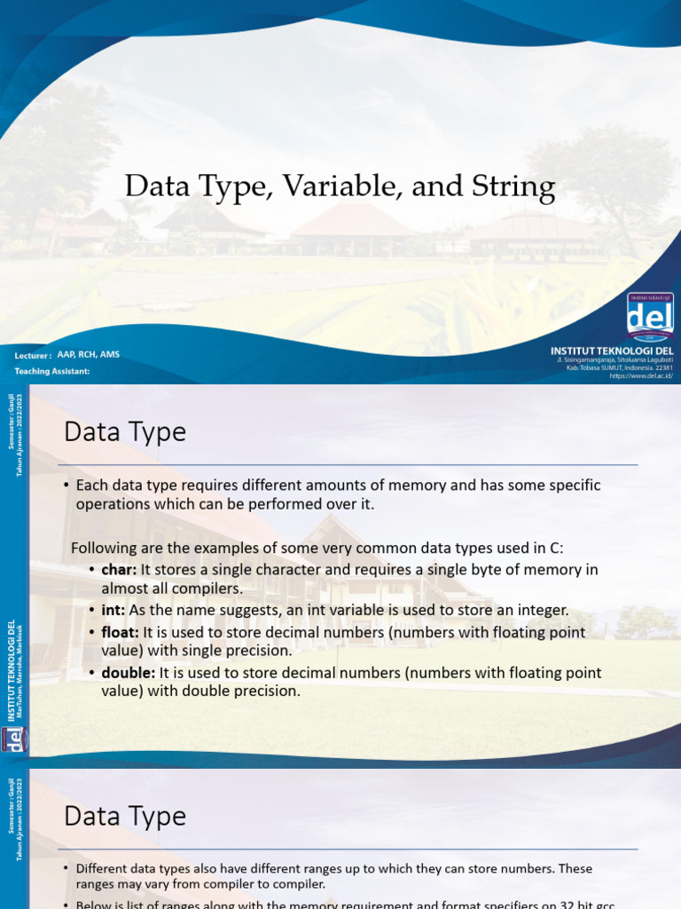 • Declaration of strings: Declaring a string is as simple as declaring a one-
