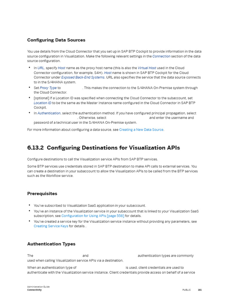 Configure destinations to call the Visualization service APIs from SAP BTP services.