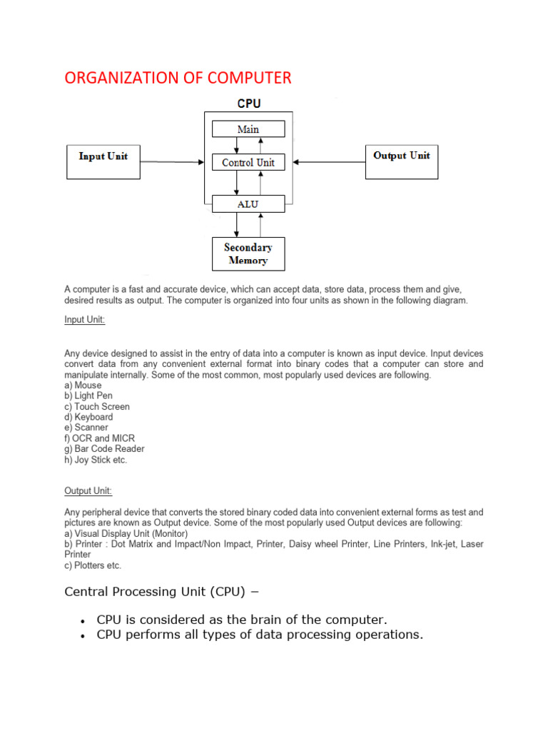 desired results as output. The computer is organized into four units as shown in the following diagram.