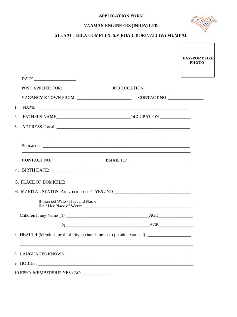 VACANCY KNOWN FROM: _________________________ CONTACT NO: ________________