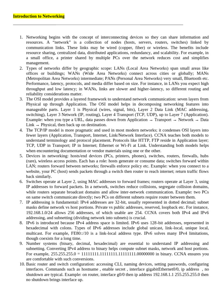 addressing, and subnetting (dividing network into subnets) is crucial.