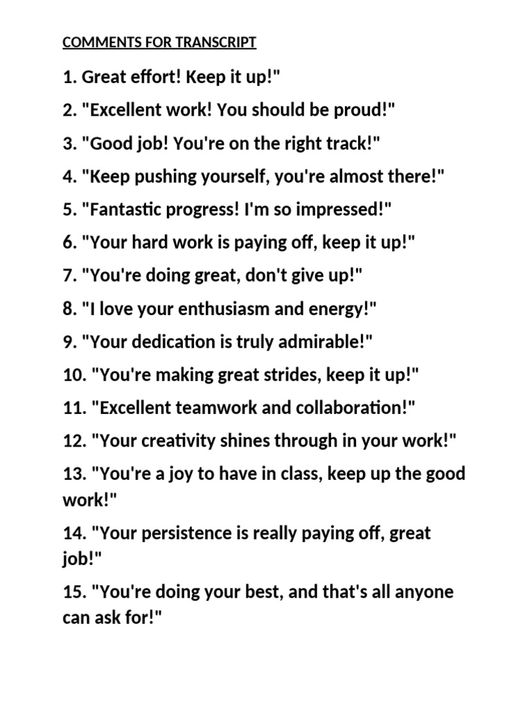 1. Great effort! Keep it up!"