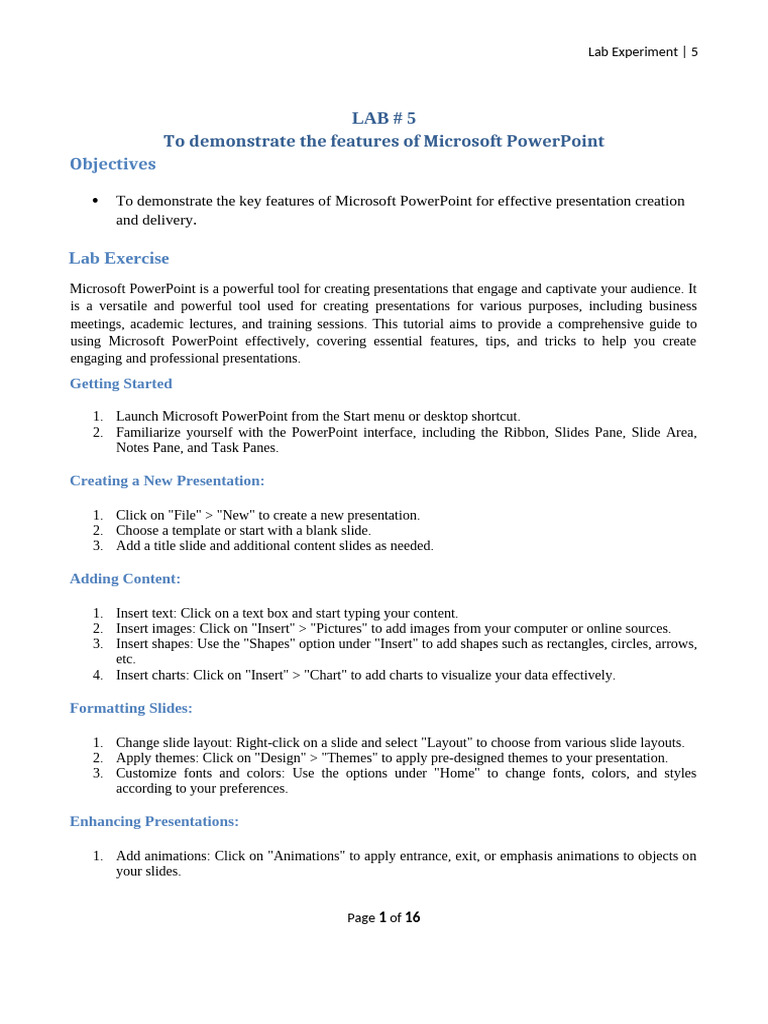 Lab Task: Make a PowerPoint Presentation according to the instructions given below: