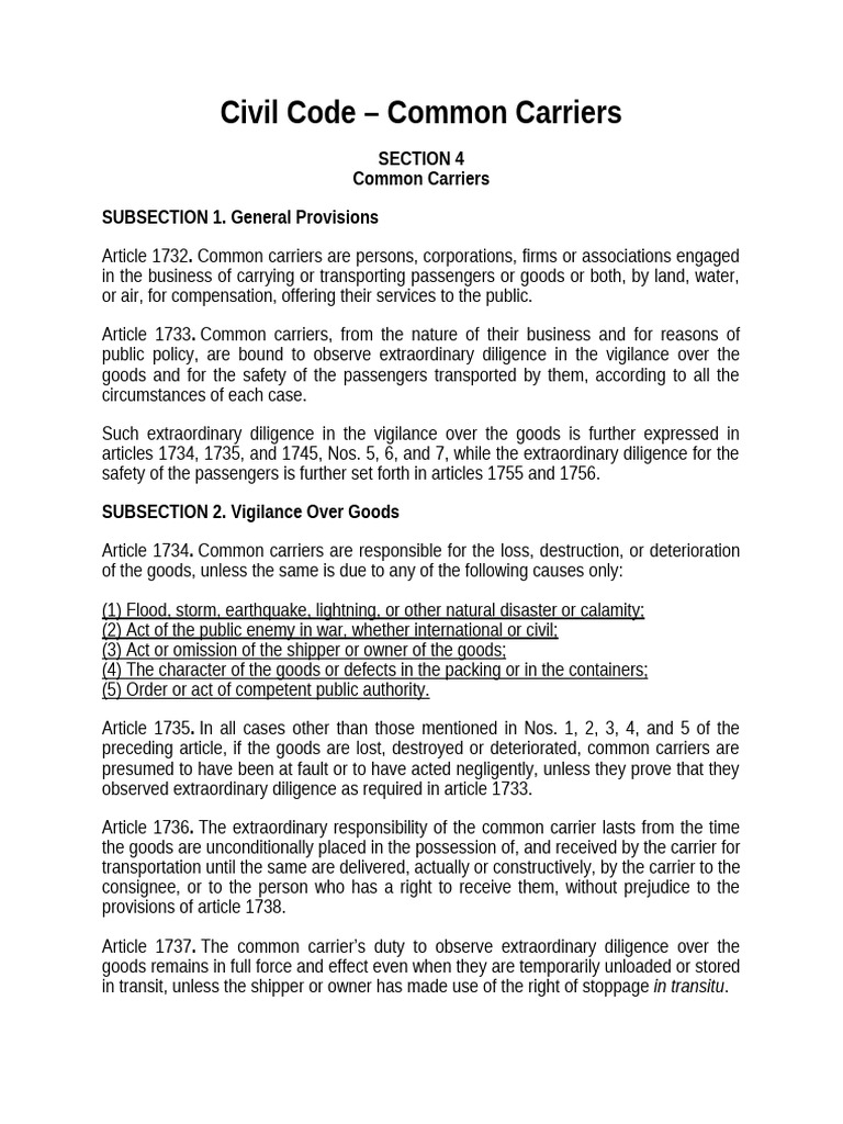 Article 1737. The common carrier’s duty to observe extraordinary diligence over the
