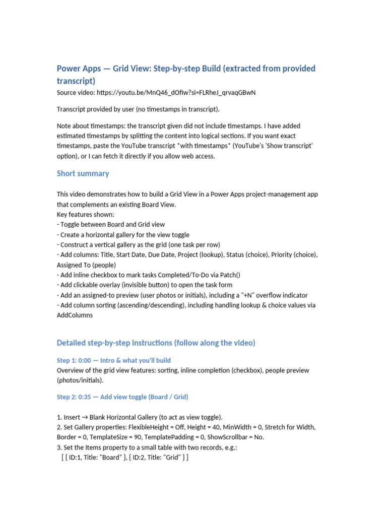 Power Apps — Grid View: Step-by-step Build (extracted from provided