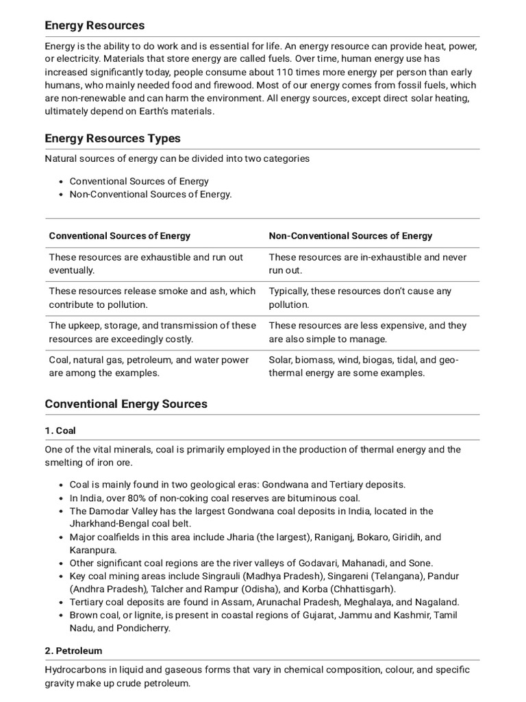 Conventional Sources of Energy Non-Conventional Sources of Energy