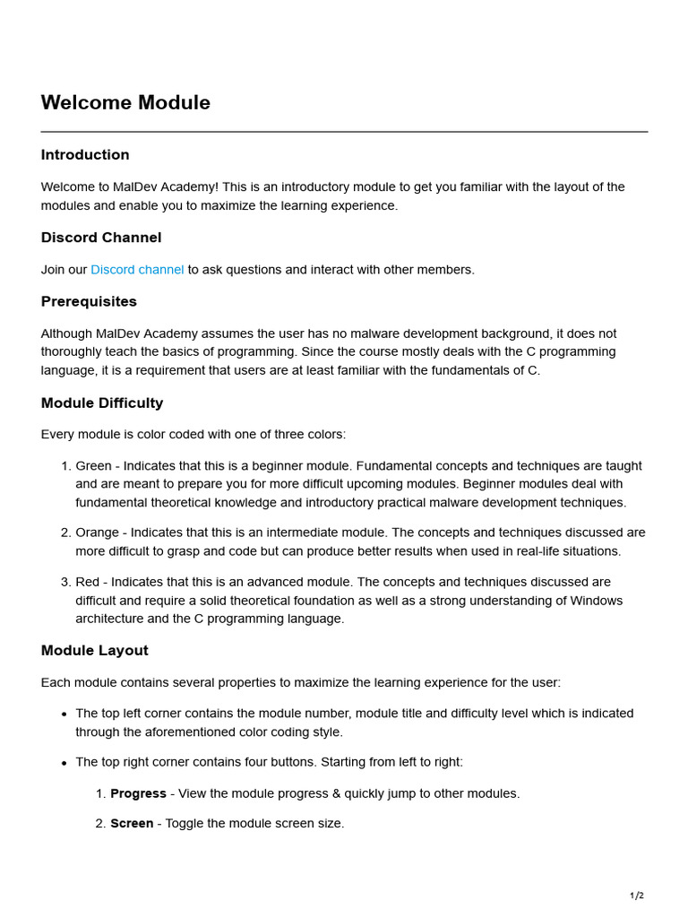 Welcome to MalDev Academy! This is an introductory module to get you familiar with the layout of the