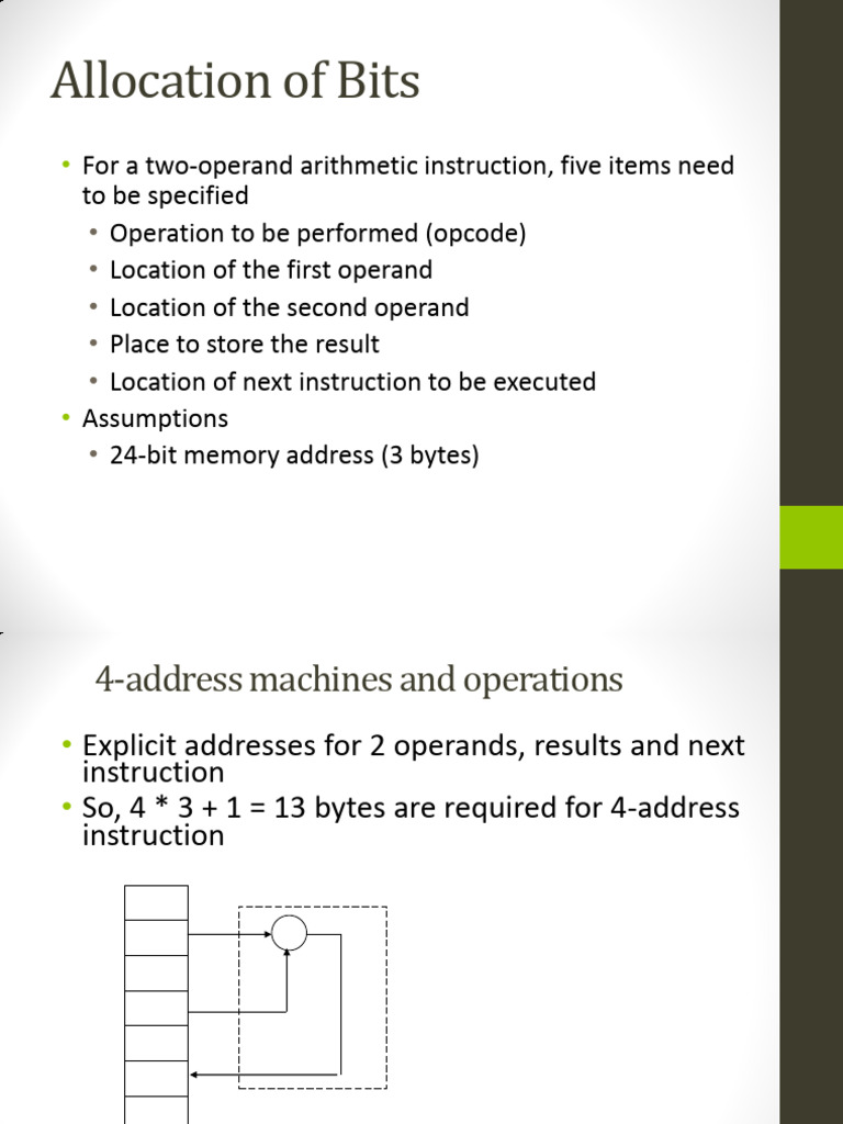 • So, 2 * 3 + 1 = 7 bytes are required for 2-address instruction