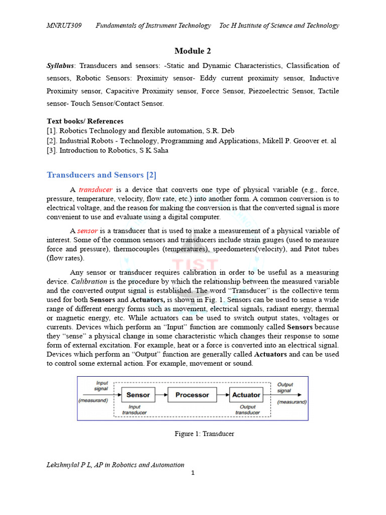 Syllabus: Transducers and sensors: -Static and Dynamic Characteristics, Classification of