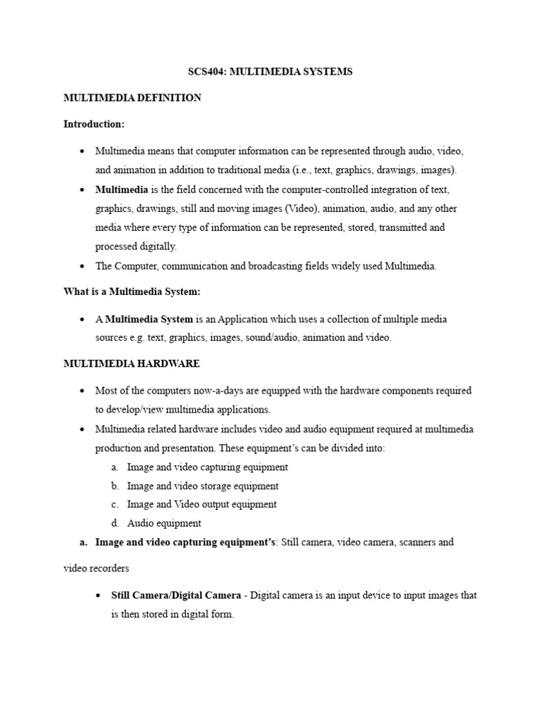 • Multimedia related hardware includes video and audio equipment required at multimedia