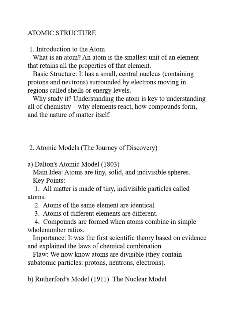 Main Idea: Atoms are tiny, solid, and indivisible spheres.