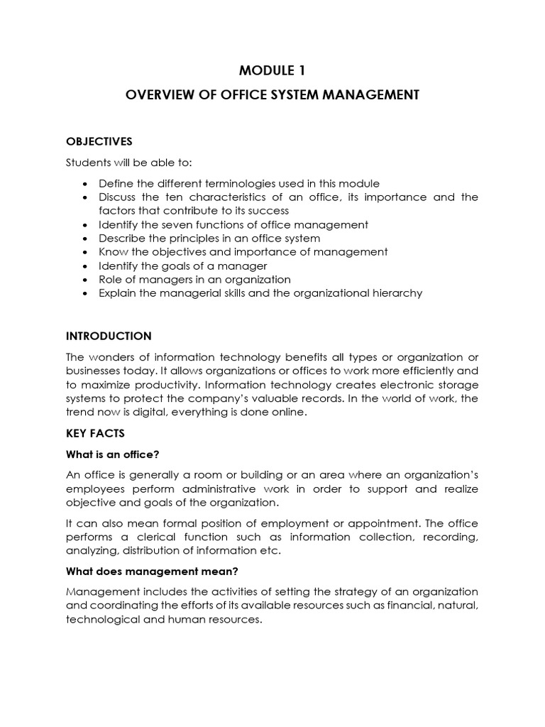 OVERVIEW OF OFFICE SYSTEM MANAGEMENT
