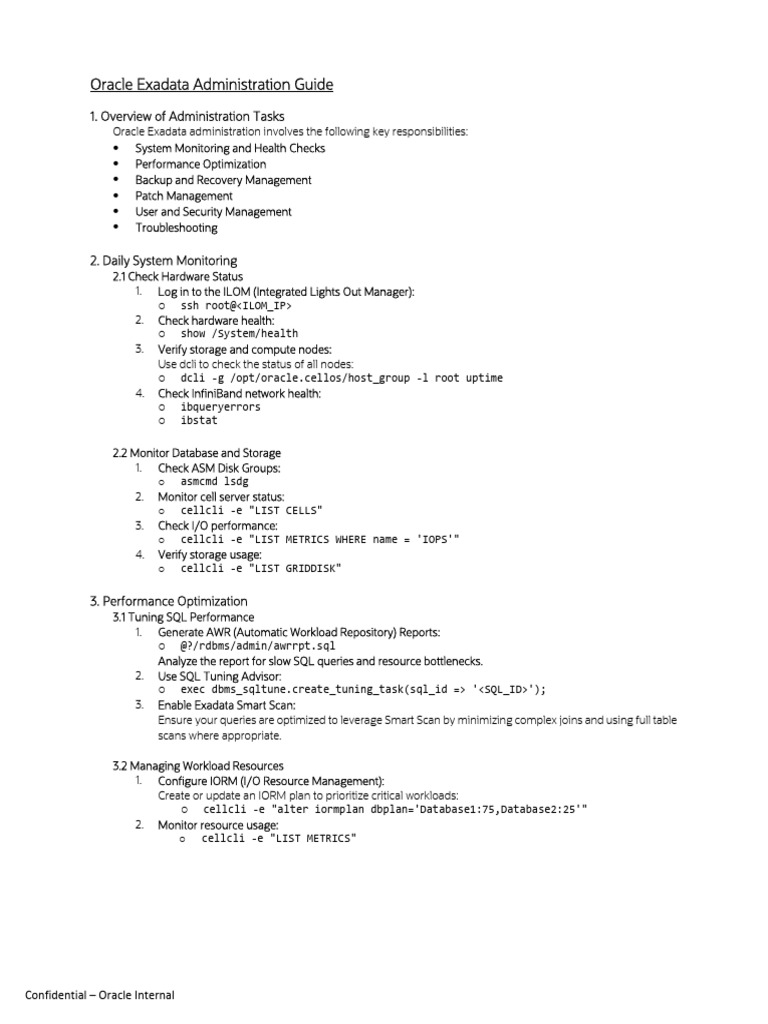 o Automate backups and patches using tools like RMAN and Oracle Data Guard.